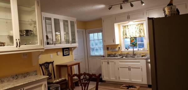Granite countertops, huge amount of storage with pantry, coffeemaker, microwave, cookware, dishes, glassware, flatware, all new stainless steel, electric, Whirlpool appliances: stove, dishwasher, and refrigerator with filtered water and crushed ice in the door