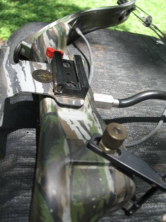 Gently used Left Hand Bear Super Magnum "44" Compound bow with Kwikee Quiver. Draw length is 28" and draw weight is 60#. Bow is factory painted in realtree camo. Bow comes with standard rest, Bear 4-pin sight in matching realtree camo, and peep sight. Bow is in great working condition and ready to hunt with.