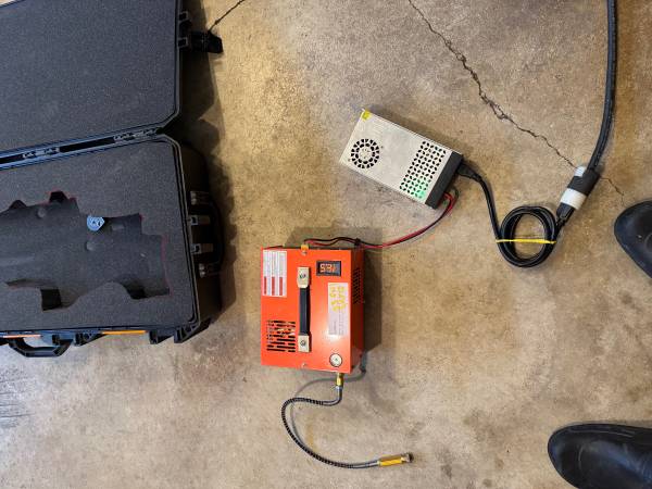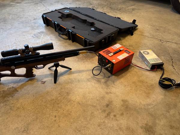 Shrouded Barrel With Integrated Sound Suppression, comes with pelican vault case, Simmons, rimfire scope, and VEVOR High Pressure Compressor, 4500PSI/30MPA/300BAR High Pressure