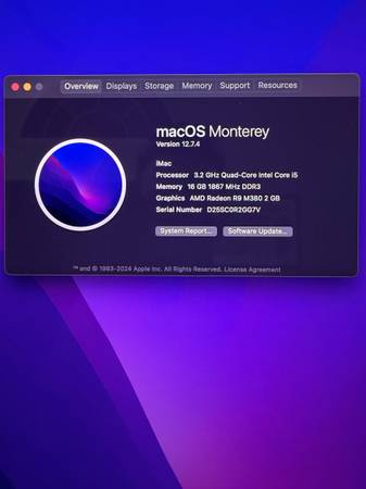 Two aftermarket 8gb ram are installed, upgraded from the standard two 4gb ram. Comes with keyboard and original packaging. No mouse included. Great condition, I'm not sure what to call the dark ghosting effect pictured on the lower left and right hand corners.