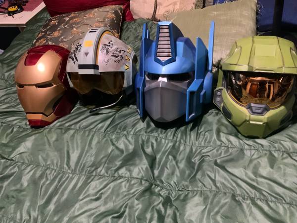 Will sell lot for $150 OBO Local transactions only. Cash only, will consider guitar trades. 1.) Master Chief (Halo). 2.) Optimus Prime (Transformers). 3.) Star Wars Fighter Helmet 4.) Iron Man...
