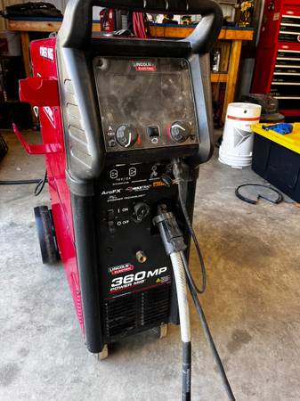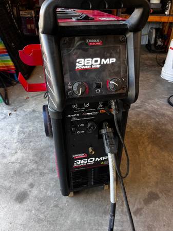 Lincoln Power Mig 360MP multi process, capable of stick, TIG, MIG, and Flux Core welding. Foot pedal included, never used. TIG gun never used, Aluminum gun used only once. All parts included and work excellent. Can provide more pics.