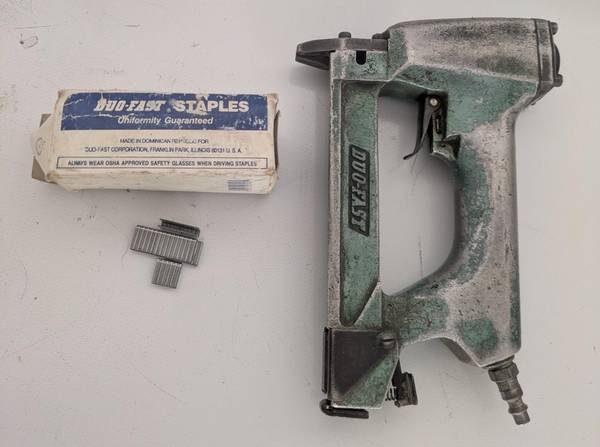 Vintage Duofast air staplegun pneumatic stapler uses 5418D staples narrow crown 3/8" - 9/16" long.