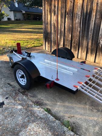 4’ x 8’ Custom Built Motorcycle Trailer 3” C-Channel Frame with 3500 lb 4” Drop Axel 14” Tires Aluminum Checker Plate Floor Pulls great at any speed Would carry 4-wheeler as well Pick up Bartlett TN...